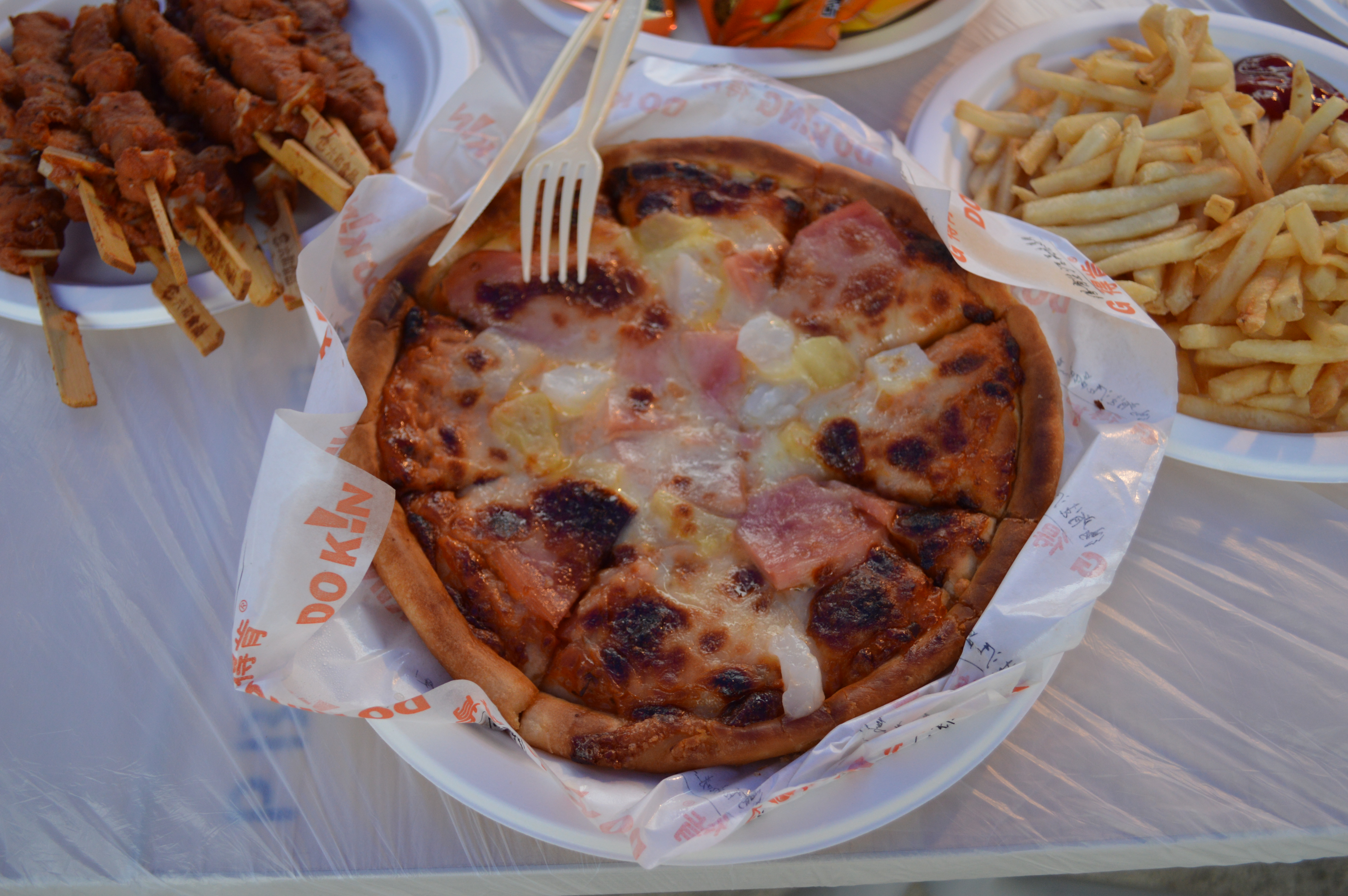 摆放整齐的高脚杯,香气四溢的pizza,种类丰富的水果沙拉,无不一一彰显着本次活动的精心筹备,就如这大学四年的酸,甜,苦,辣,大家一起上课,嬉闹,分担忧愁的你们,终将别离,天色的阴沉也流露着淡淡的忧伤。