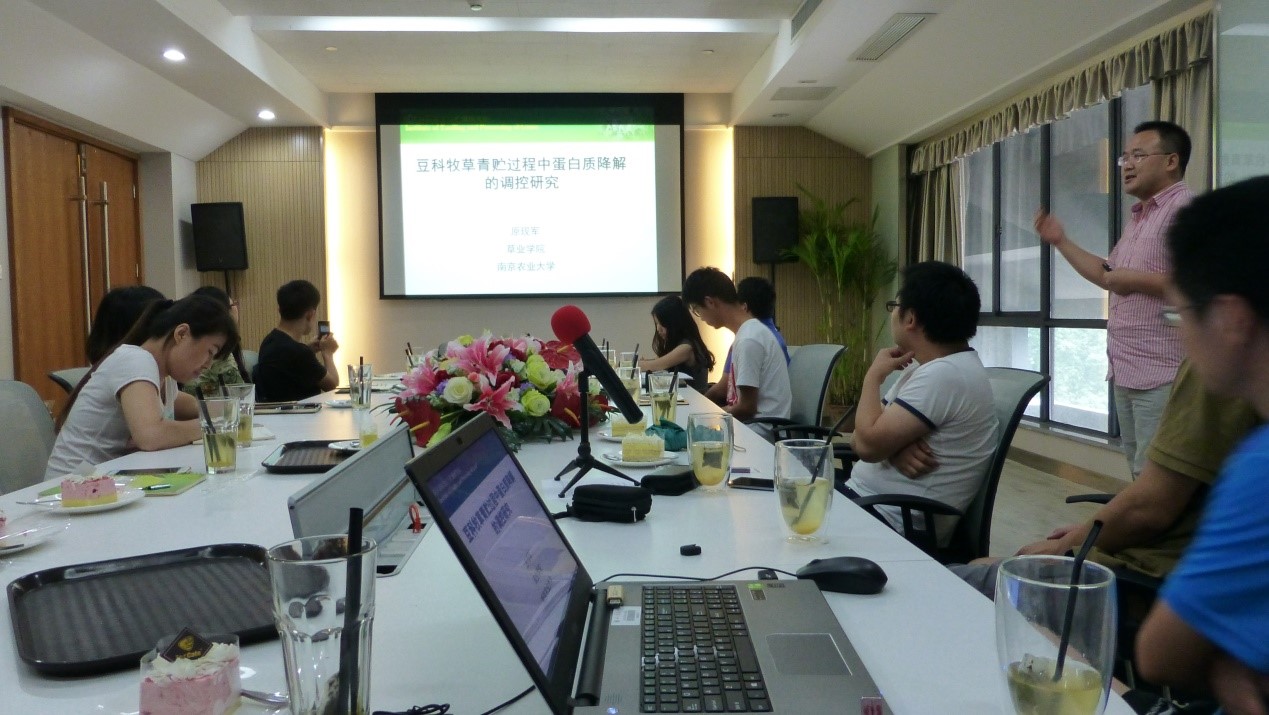 徐彬副院长主持了沙龙,青年教师孙逍、原现军、施海帆、迟英俊和徐彬结合自己的研究工作,分别作了题为“氮沉降对土壤理化性质以及养分的影响机制”、“豆科牧草青贮过程中蛋白质降解的调控研究”、“拟南芥RIC1切割微丝调控花粉管顶端生长的机制研究”、“豆科植物特有的WRKY相关基因的鉴定和功能分析”、“黑麦草叶片衰老机理与提高其饲草品质的应用基础研究”等主题报告。与会青年老师和研究生对5位老师的报告展开细致、深入的讨论。