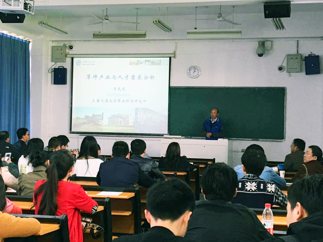 王教授对草坪产业与人才需求进行了分析。讲述了草坪产业的概况。他说:草坪主要应用在高尔夫球场、体育运动场、城镇绿化等相关领域;与之相关的草坪相关服务行业有:草坪农场、草坪工程公司、草坪建植与养护产品供应商、教育与研究机构等。他对草坪行业的企业情况优缺点也进行了分析,并讲述了草坪总监、草坪主管、草坪技术工等不同层级职位需具备的知识、技能以及职业通道。王教授强调:不论是做哪一行,特别是在草坪相关工作中,专业知识、操作技能和综合管理的融会贯通是需要不断学习和提升的。