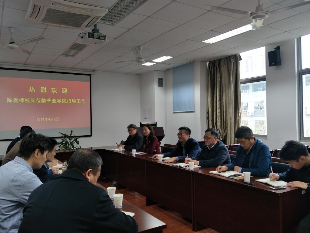 陈发棣校长在听取汇报后,对学院在成立不长的时间内取得的成绩给予了充分肯定,对学院全体师生作出的努力给予了高度赞扬,并对学院今后一段时期的工作提出了几点建议。一是要继续精心筹划,针对全国草业区域布局和产业瓶颈所在,提前介入并凝练学院的研究方向;二是要主动联系林草局,将自身特色优势与国家战略和地方政策对接,争取得到国家和各级政府的支持;三是注重人才培养,继续探索与罗格斯大学合作办学经验,形成学院自己的特色;四是草业社会服务空间很大,在西藏和句容已有一定的基础,要继续努力建设成特色基地。最后他表示,学校将会一如既往地支持av在线