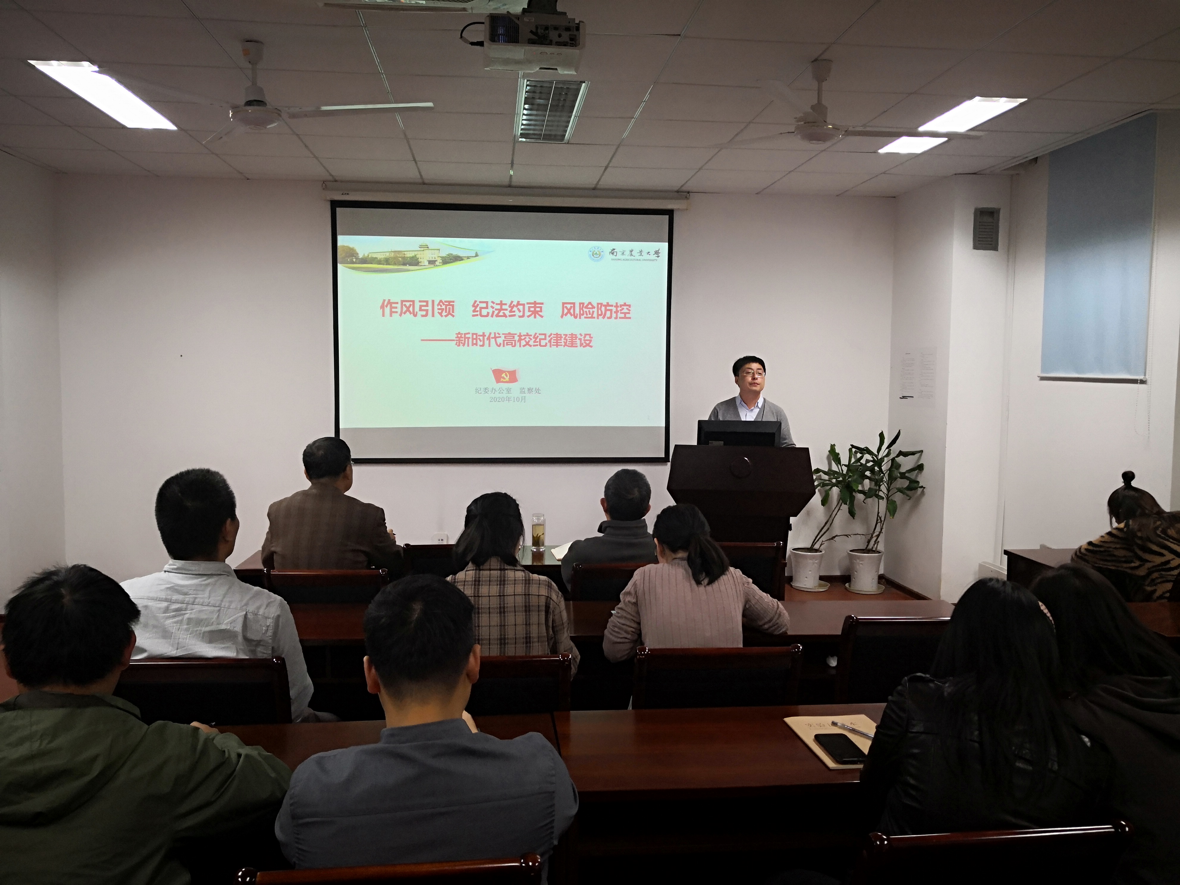 梁立宽报告的题目为《作风引领、纪法约束、风险防控——新时代高校纪律建设》,他从当前形势判断与政治要求、问题表现与典型案例、党纪国法与作风建设以及风险防控与纪律监督四个方面,深入分析了党的十八大以来全面从严治党的新形势,结合相关违反中央八项规定精神问题典型案例,以案释法,以案明纪,深刻分析当前高校队伍作风建设存在的相关问题警示全体教职工要切实提高政治站位,时刻紧绷纪法这根弦,自觉守纪律、讲规矩,做到廉洁奉公。