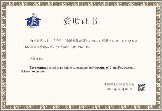 近期,中国博士后科学基金第 69 批面上资助结果公布,av在线 钟山青年研究员王思然获得二等面上资助。