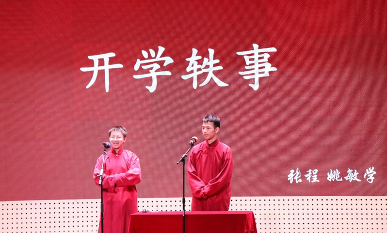 张程、姚敏学两位同学带来的相声《开学轶事》,以诙谐幽默的方式讲述新生入学的故事。这些富有生活气息的小细节让大家捧腹大笑,缓存了这个特殊周末的温柔与快乐。