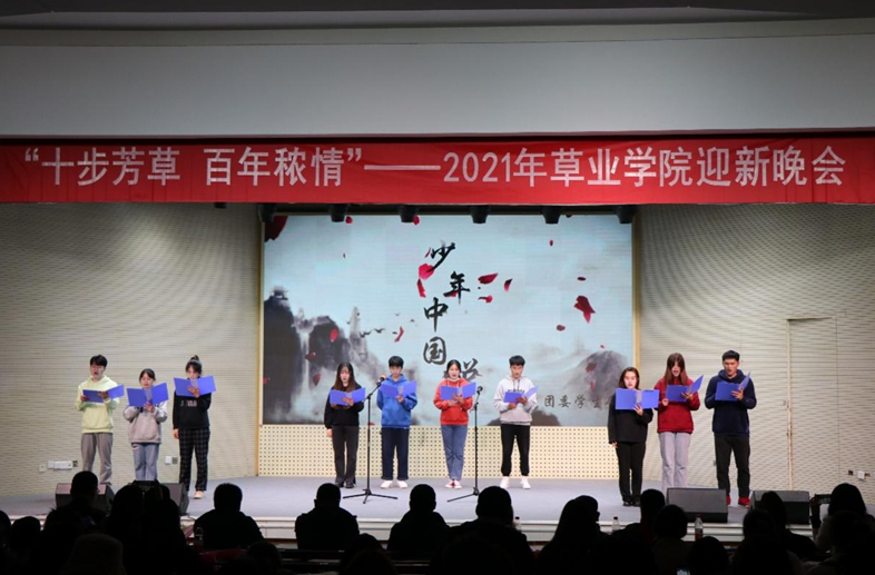 2021年“十步芳草,百年秾情”迎新晚会在大学生活动中心举办。
