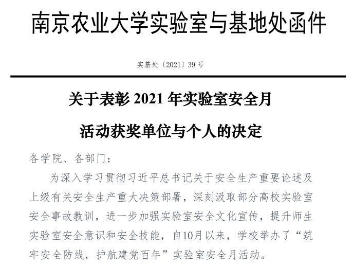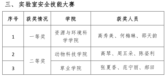 为深入学习贯彻习近平总书记关于安全生产重要论述及上级有关安全生产重大决策部署,深刻汲取部分高校实验室安全事故教训,进一步加强实验室安全文化宣传,提升师生实验室安全意识和安全技能,自10月以来,学校举办了“筑牢安全防线,护航建党百年”实验室安全月活动202111月16日,在实验室安全月活动中的实验室安全技能大赛中,由张夏香老师带队组成的参赛队伍荣获二等奖。