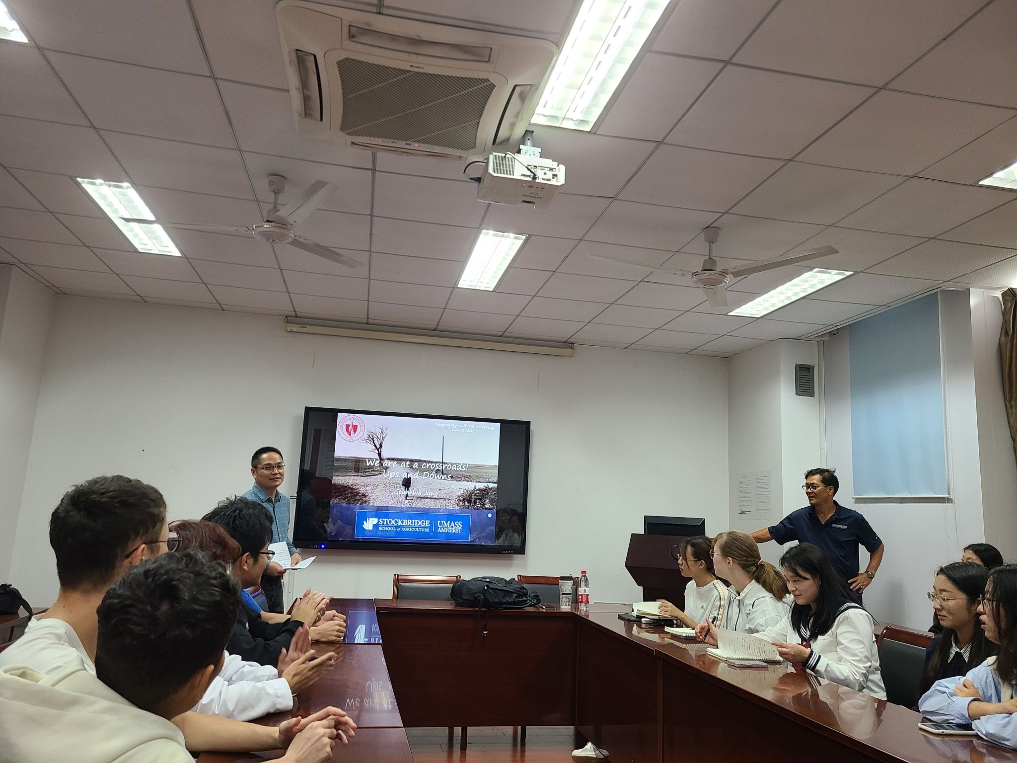 Geunhwa Jung 教授用简洁的英语与生动的肢体语言为同学们上了富有人生哲理的一课,他用一个个鲜活的事例,告诉了我们活在当下的意义,强身健体的重要性。他说,年轻人要拥有全球视野而非故步自封做井底之蛙。大学期间要积极参加校园活动,要认真上课,要找机会参加实习训练,要勇于向他人寻求支持,特别要做好当下,而非担忧未来。