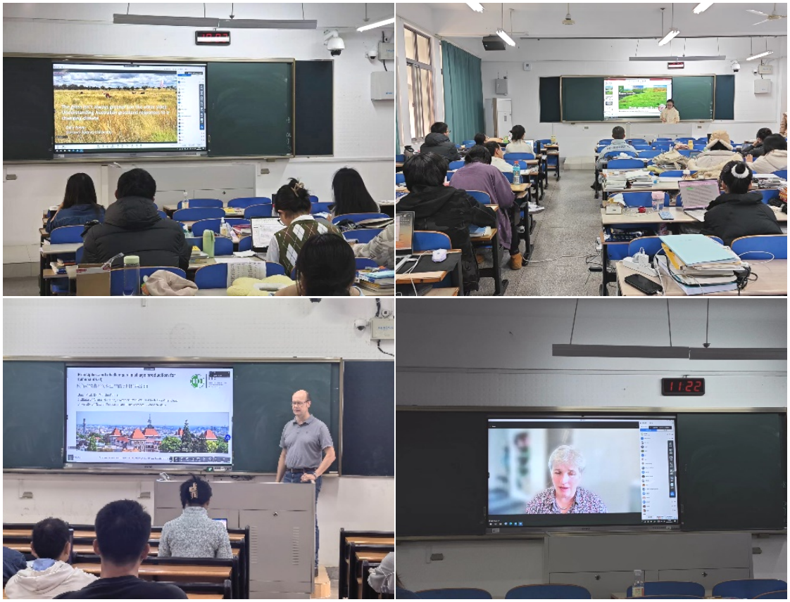 六位专家分别介绍了不同国家和地区的草地发展现状、面临的生态问题及最新的科学研究进展。六场高水平的学术报告,吸引了我校相关专业的数十名研究生到现场听聆听,还有来自兰州大学、北京林业大学、中国农业大学、甘肃农业大学、山西农业大学、东北师范大学、德国拜罗伊特大学和西悉尼大学等国内外十余所高校的数百名同行专家和研究生线上参加了报告会。