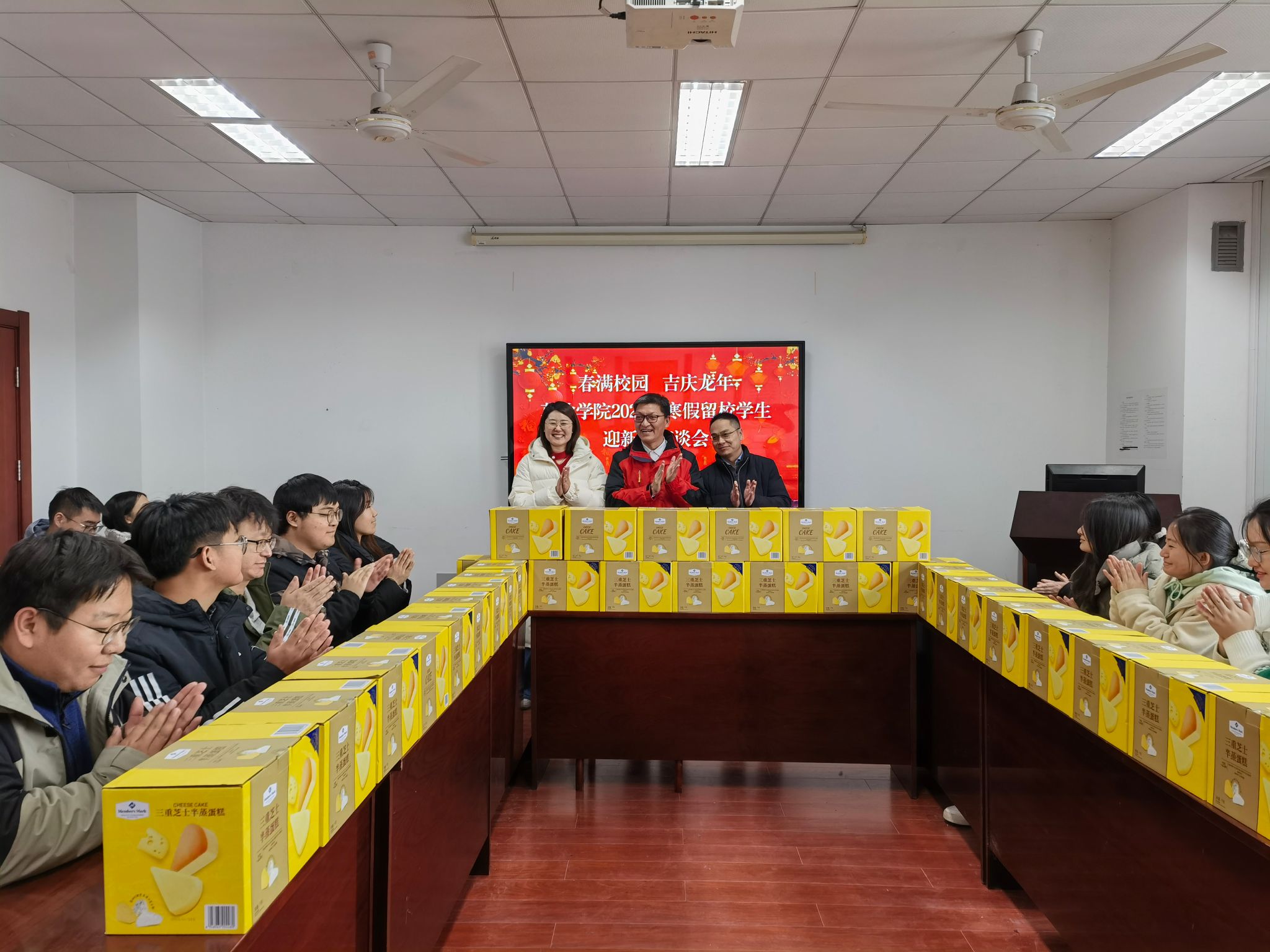 高务龙首先代表学院向春节留校学生送上节日的温暖问候和新春的美好祝福。学院领导关心慰问留校学生情况,提醒注意各类安全事项,保持身心健康,度过一个充实、愉快、平安的春节。