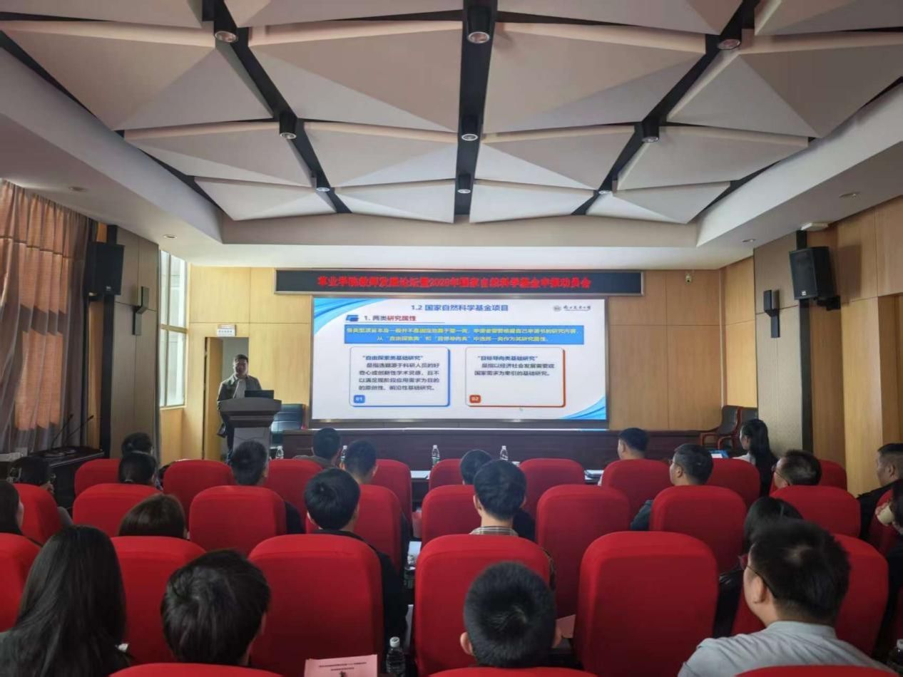 会上,学校科研院葛焱副院长作2026年国家自然科学基金申报动员报告。葛院长系统梳理并介绍了2025年度学校及学院在国家自然科学基金项目申请与立项方面取得的最新数据与总体情况,客观总结了当前学校基金项目工作的进展与成效,在此基础上,他详细阐述了学校针对2026年度基金项目申请制定的组织工作方案与推进计划。特别针对青年教师的成长需求,清晰勾勒了科研成长与发展的主要路径,并提出了富有指导意义的八点项目申请建议,为与会教师指明了方向。