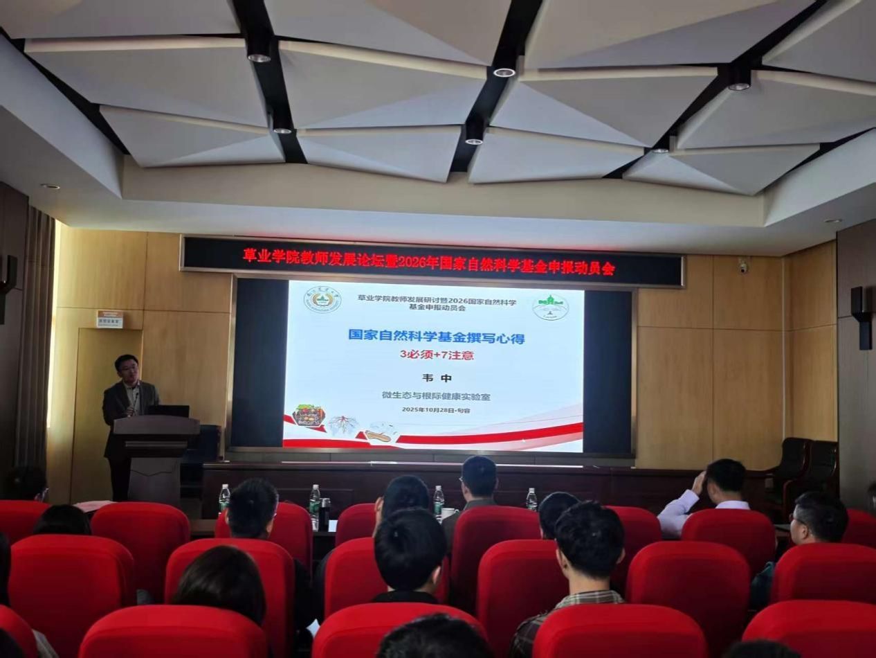 在句容草坪研究院举行了2026年度国家自然科学基金申报动员会及培训会。本次会议旨在聚焦教师科研能力成长,全面启动新一年度的国家自然科学基金申报工作,助力学院科研水平再上新台阶。会议由学院副院长陈煜主持。