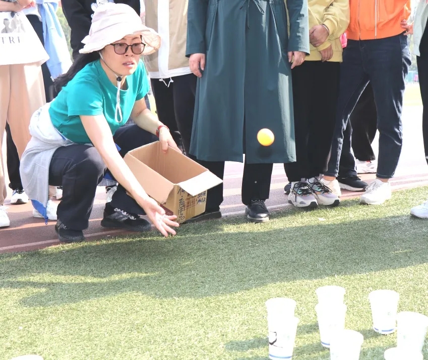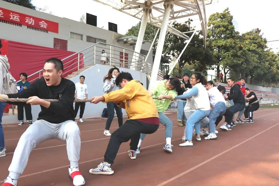 趣味运动会的项目区别于传统运动会,主要分为单人项目和团体项目,单人项目有乒乓球定点投和足球归类,团体项目有袋鼠接力跳、跳长绳、摸石头过河和拔河四项,既充满趣味性,又具有了挑战性。大家积极参与,整场运动会精彩纷呈,不仅增强了同学们之间的团队协作能力,还增进了学院老师同学间的友谊。赛场上,小伙伴们激情飞扬、奋力拼搏,相机快门也在追踪记录着比赛进程,拍下一个个精彩瞬间。