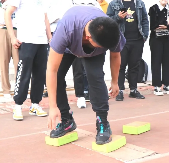 (3)第二名队员接过三块“石头”,重复前过程,如此往复,先完成获胜。