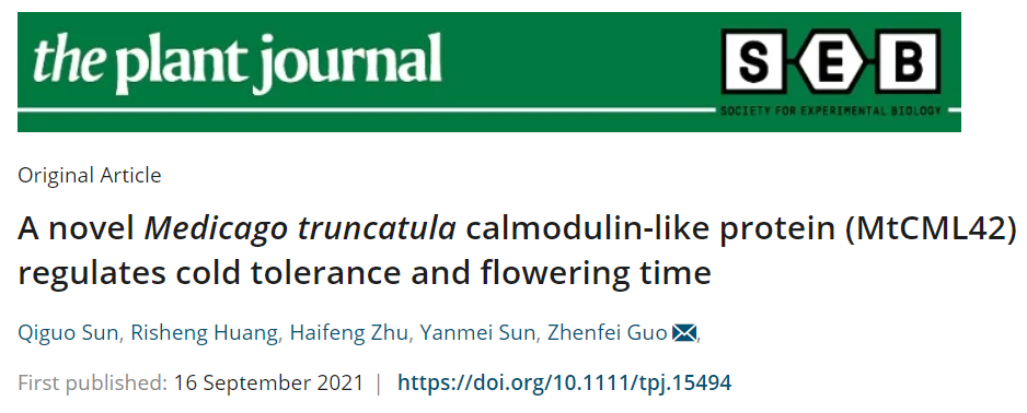 近日,郭振飞教授团队在国际植物领域著名刊物The Plant Journal上在线发表了题为A novel Medicago truncatula calmodulin-like protein (MtCML42) regulates cold tolerance and flowering time的研究论文。