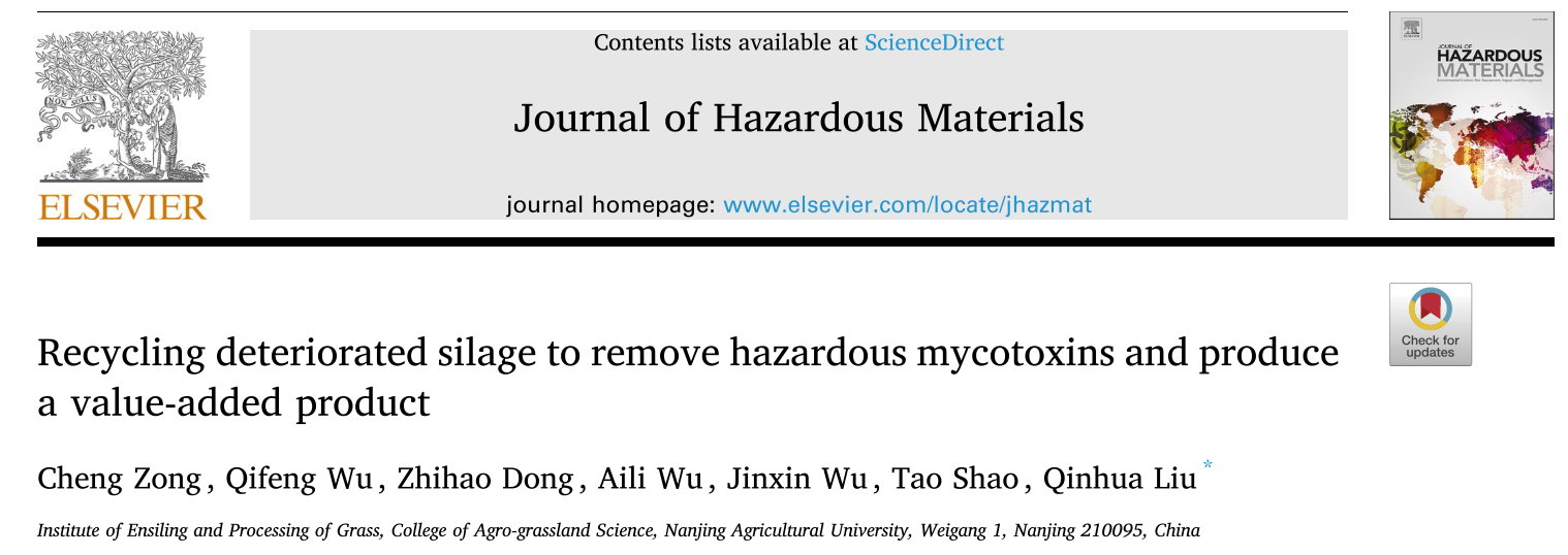 近期,av在线 邵涛团队分别在Journal of Hazardous Materials5年影响因子12.984)和 Journal of the Science of Food and Agriculture5年影响因子4.096)在线发表了题为“Recycling deteriorated silage to remove hazardous mycotoxins and produce a value-added product”和“Exploiting the anaerobic fermentation of alfalfa as a renewable source of squalene”的研究性论文。