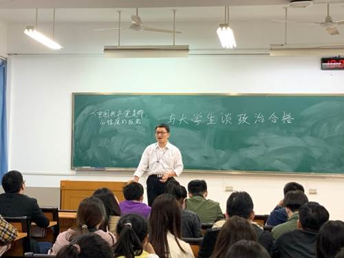 副院长高务龙作“与大学生谈政治合格”专题讲座,全体学生党员、入党积极分子参加学习。