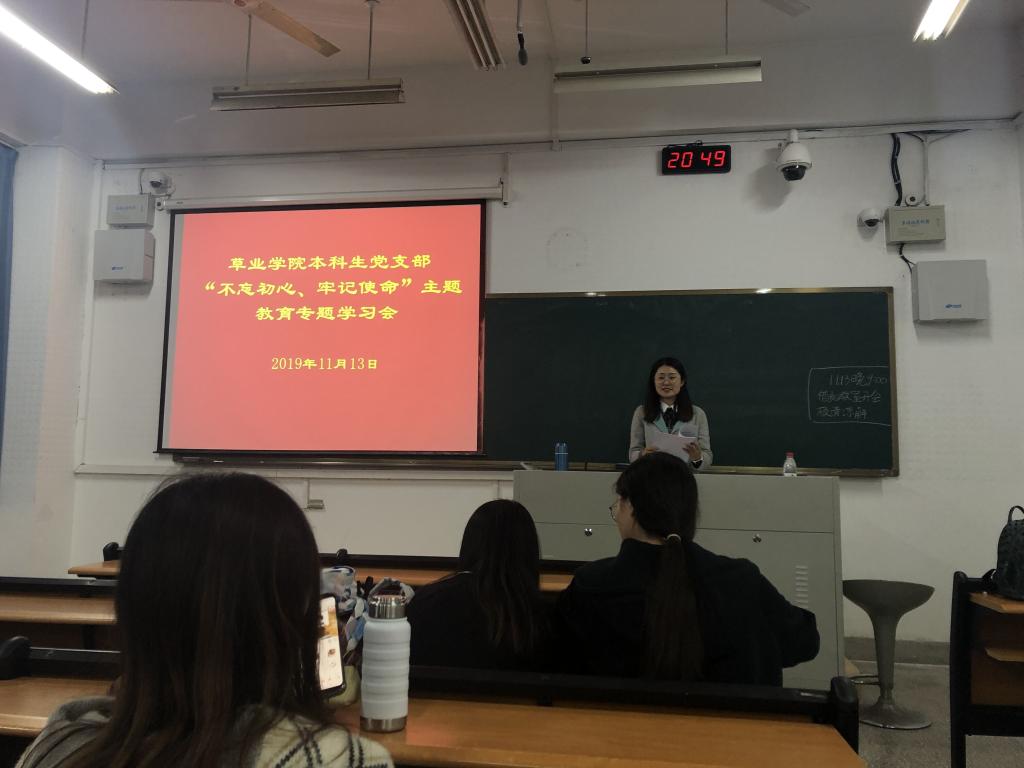 1113日晚,本科生党支部召开“不忘初心、牢记使命”教育专题学习会,本科生党支部书记武昕宇书记主持了本次会议。