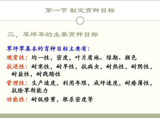 教师党支部副书记于景金副教授在讲授《草坪科学研究方法》的课程中,讲述了草坪具有消减噪音、提供休闲和运动场所及水土保持等多种功能,“绿水青山就是金山银山”,草坪在生态保护和环境美化方面发挥了不可低估的重要作用。在草坪草育种中,可以有多种目标性状,比如矮生型、质地细腻型、耐践踏型、根系发达型等,不同目标性状的草坪草的适用条件不同。比如,耐践踏型草坪草可以专门用于运动场草坪建植中,特别是在中国足球改革发展总体方案中明确提出“三步走”战略,近期目标是要理顺足球管理体制,制定足球中长期发展规划,创新中国特色足球管理模式。中期目标是要实现青少年足球人口大幅增加,职业联赛组织和竞赛水平达到亚洲一流,国家男足跻身亚洲前列,女足重返世界一流强队行列。远期目标是要使中国成功申办世界杯足球赛,男足打进世界杯、进入奥运会。而要达到这三个目标,就需要大量兴建草地足球场,而不是人造草足球场,因为草坪球场富有弹性,能够对运动员提供保护作用,另外草坪足球场属于环境友好型场地,绿色、环保、健康,这些都是人造草足球场所不具备的优势。综上,草坪草育种是草坪业发展的立足之本,我们要大力发展优质抗逆草坪草育种工作,补齐短板,不断缩小我国与发达国家草坪业的差距。