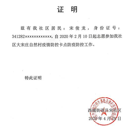宋俊龙同志在疫情严重的关键时期积极贡献自己的力量,体现其作为青年学子的责任和担当,也表明了他向党组织靠拢的决心。一个人贡献虽微小,但相信这份“星星之火”,将吸引更多人投身战“疫”行动,最终汇聚成磅礴的抗“疫”力量。