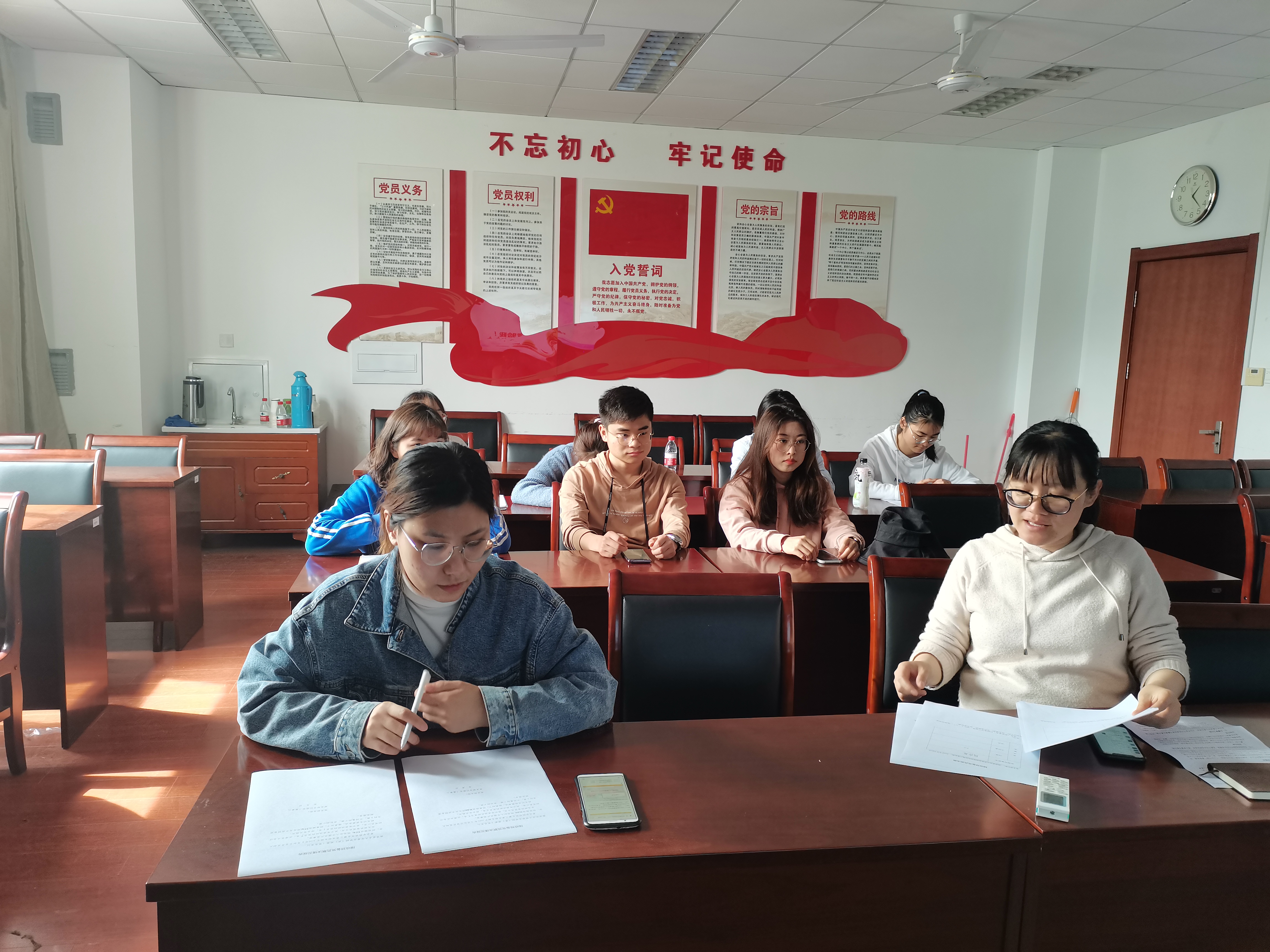 随后,5位正式党员进行无记名投票,表决结果如下:本支部共有党员10名,其中正式党员6名,缺席1名,经无记名投票表决,5票赞成,0票发对,0票弃权,党支部同意接收罗思敏和殷庭超两位同志成为中共预备党员。