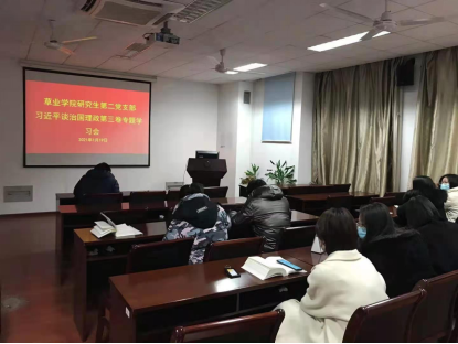研究生第二党支部召开了关于《习近平谈治国理政》第三卷专题学习会议。党支部书记原现军同志主持会议,孙茹茹同志和羿明璇同志分别带领大家学习《习近平谈治国理政》第三卷第十四章“把人民军队全面建成世界一流军队”和第十五章“维护香港、澳门长期繁荣稳定,推进祖国和平统一”。