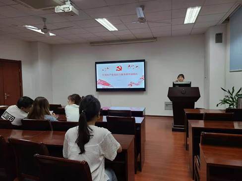 会议第一项,郑钰莹同志作为本次学习会的领学人,通过PPT的形式向大家依次介绍了抗日战争时期的民族先锋、政治领导核心以及夺取抗战胜利的引领者和决定性力量,让党支部全体党员同志再一次领略到抗日战争时期在中国共产党领导下的中国人民视死如归、宁死不屈的民族气节以及天下兴亡、匹夫有责的爱国情怀。