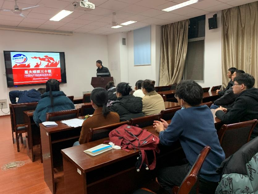 研究生第二党支部召开了微党课专题学习会议。此次会议由党支部副书记陶亭亭同志主持,杨鑫同志带领大家学习了“星火燎原三十载—中国共产党的革命成长史”