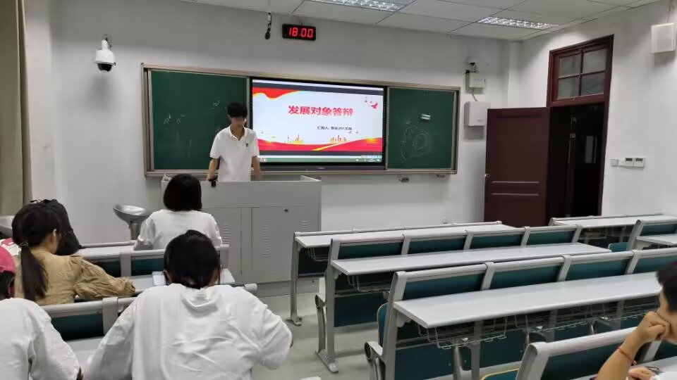 党委本科生党支部在主楼116召开积极分子发展为党的发展对象答辩大会,参加会议的有5名正式党员和4名预备党员,会议由党支部书记武昕宇主持。