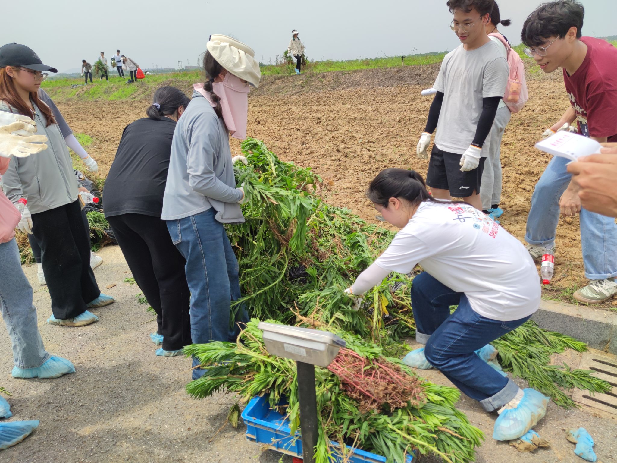 在海雀稗的种植区,刘信宝老师带领学生们识别了目标物和多种杂草,一声令下,同学们拔除根茎、收集杂草、搬运称重……各小队成员热火朝天、不亦乐乎。