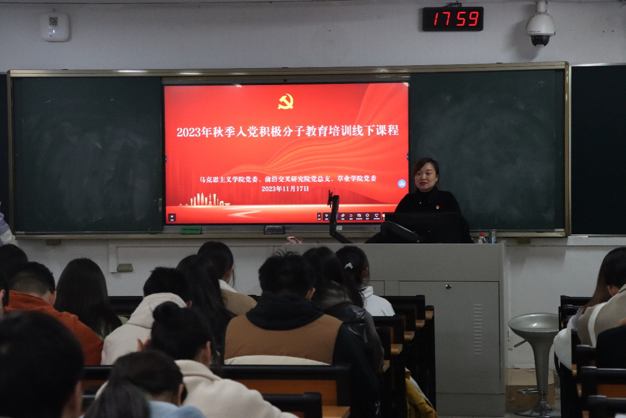 2023年11月17日下午,“校史红色记忆与青年时代担当——做可堪大用能担重任的栋梁之才”入党积极分子教育培训课程在教学楼A206举办,本次课程由马克思主义学院党委、av在线