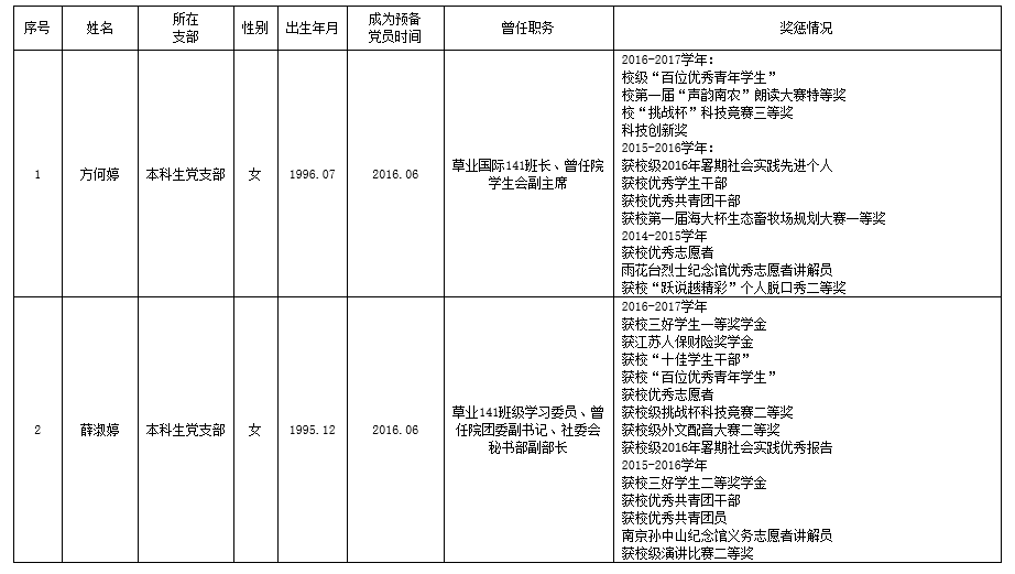 根据av在线 党员发展工作安排,经转正答辩,党支部讨论,结合个人成绩、综合测评以及获奖任职等综合表现,经院党委讨论审核,拟对本科生2名中共预备党员进行转正,具体名单如下: