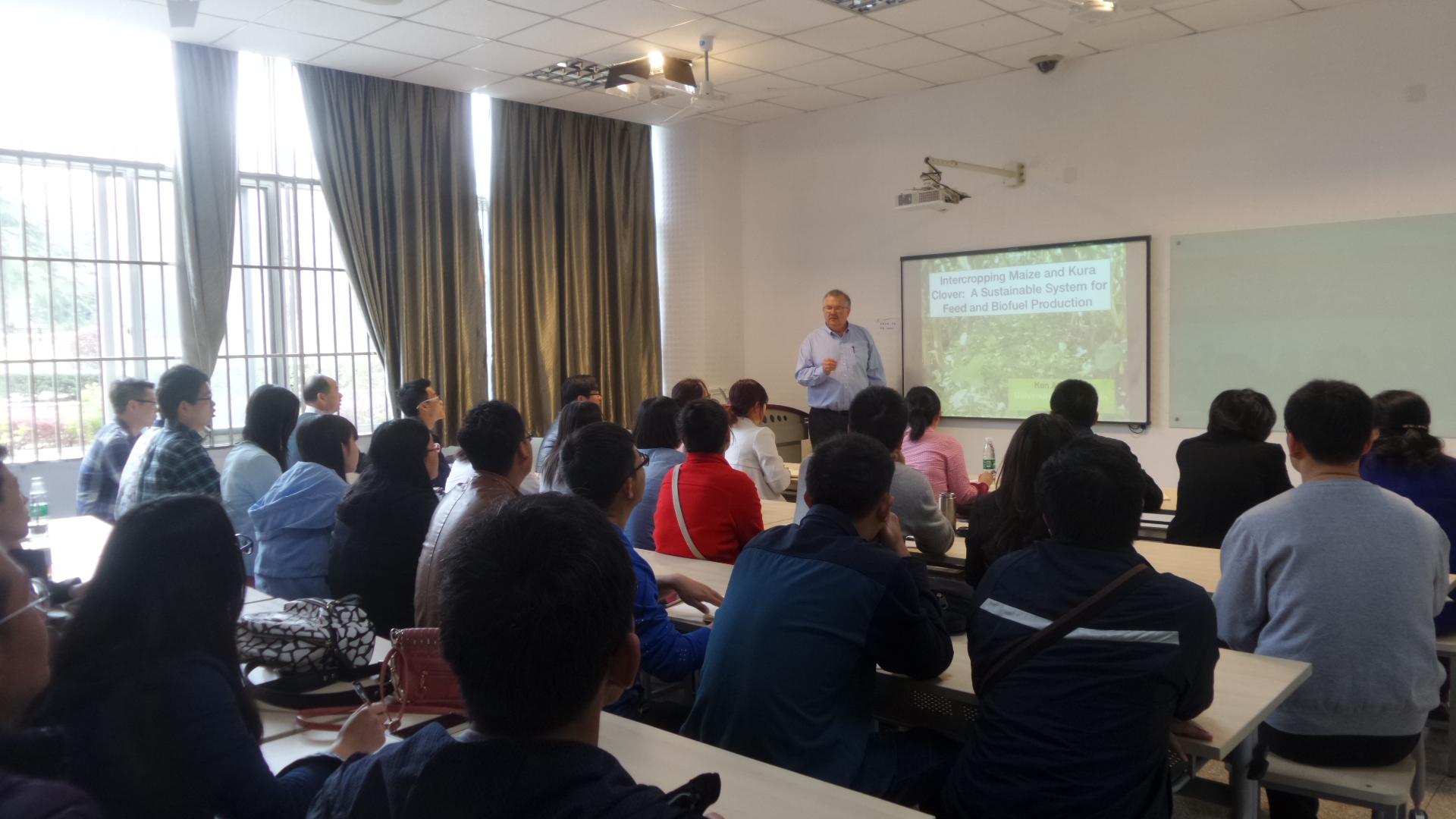 报告的最后,Albrecht教授与老师,同学展开了讨论。探讨了为什么在轮作系统中选用Kura三叶草,国内农业与威斯康星州的异同,以及国内牧草市场等问题,并对该轮作系统进行展望。