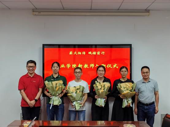 活动的第一个阶段举行了新教师入职仪式,学院近三年新入职教师先进行了自我介绍,并行了交流,荣休教师沈益新教授为新教师佩戴校徽,院领导向新进青年教师送上鲜花献并鼓励青年教师要肩负教书育人职责,坚守立德树人初心,努力成为党和人民满意的“四有”好老师,努力在教学科研、人才培养等方面做出更大成绩,为学院的发展贡献力量。最后,新进教师进行了入职宣誓。