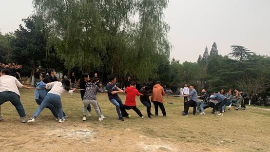 参观结束后,教师们到浦口不老村进行拓展活动,在教官的精心设计和组织下,青年教师们开展了形式多样的团建活动。每一位队员都积极投入,施展各自特长,开动脑筋层层交流、理解、反馈、互助,达成活动目标,智慧和力量结合,激发出教师们团结一致、克服困难、挑战极限的勇气。