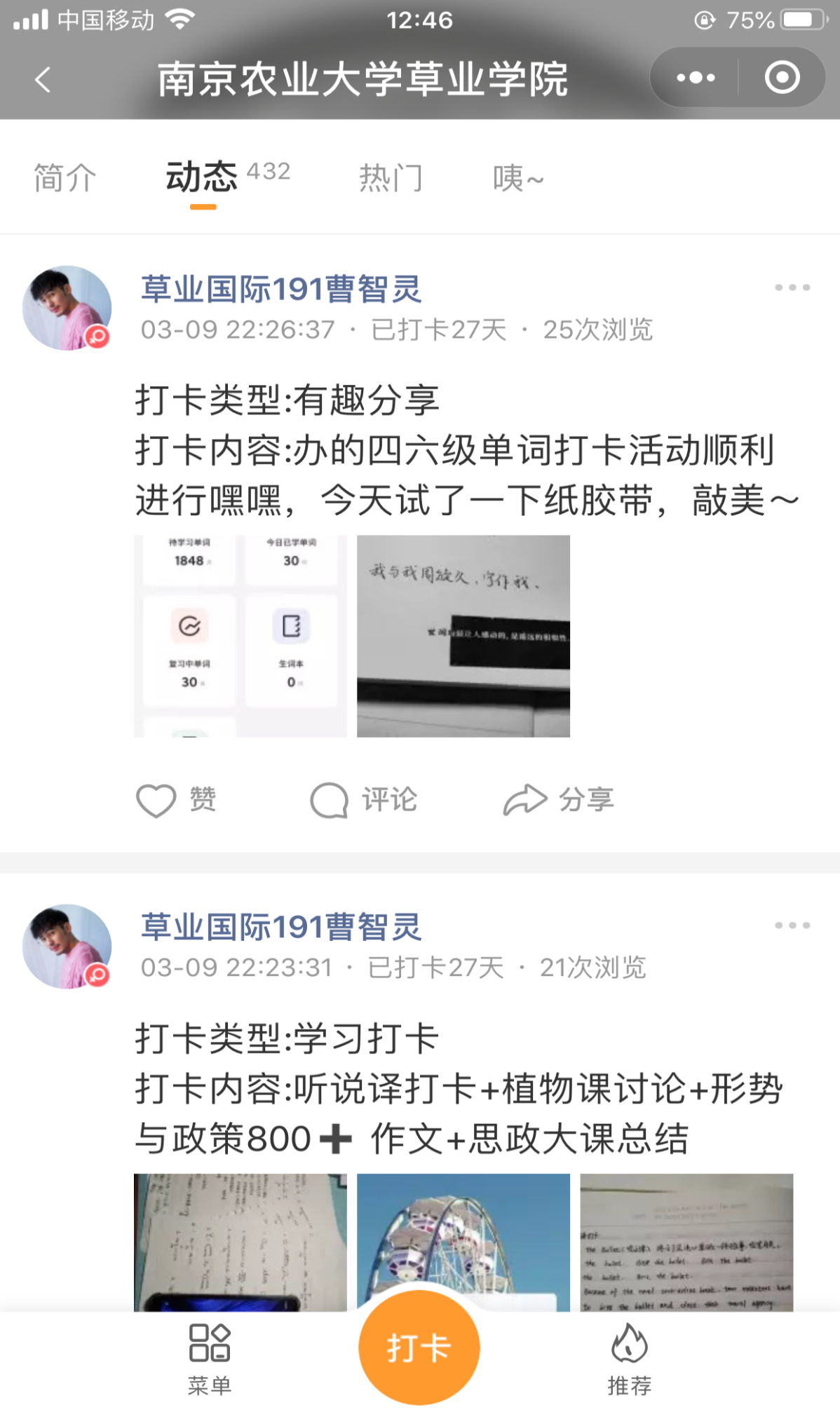 同学们利用这段时间养成了良好的学习习惯并充实提升了自己。本次活动,同学们通过微信小打卡小程序积极参与,连续21天分享自己在家的学习与生活,展现了良好的学习习惯与积极向上的生活态度。
