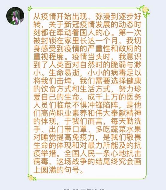 虽然是线上活动,但并没有影响同学们的真情实感,初春里的狂风暴雨在同学们的笔尖里都变得微不足道了。