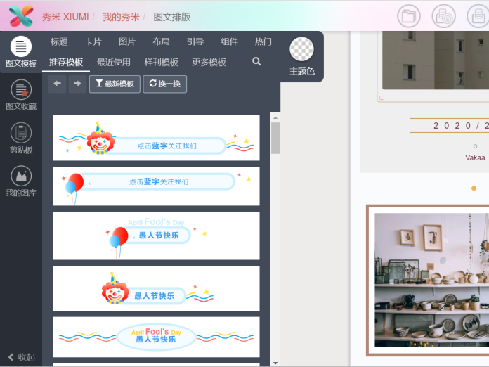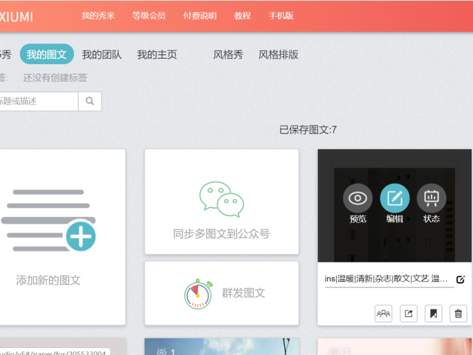 点击上方橙色菜单栏“我的秀米”,再点击“风格排版”即可看到不同风格的模板。