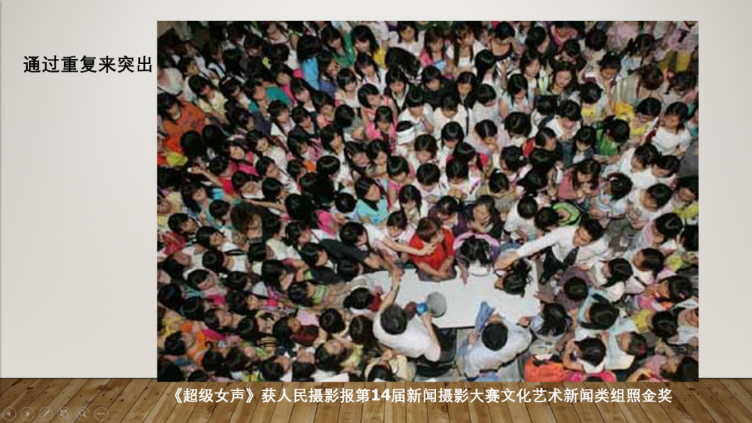 新闻摄影在构图时,应遵循以下原则。第一,要有鲜明的主题,明确的视觉印象。第二,要能把观众的注意力引向被摄主体。最后,画面结构应该简洁明了,协调统一,具有生动性。