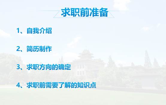 昨天有幸听了草业优秀师兄师姐的求职经验,收获了很多,我认识到求职过程中要密切关注就业信息,要充分了解企业和自身,其中关汉民师兄给了很多很切实的经验,比如获取就业信息的渠道、个人简历需要注意的问题以及如何更有效的了解企业信息。其次要提前做好就业准备,真正着手去做。此外许茜茜师姐提到的一些善于记录总结的学习经验也给了我很多启示。让我更有计划有信心地面对即将到来的研究生的生活。