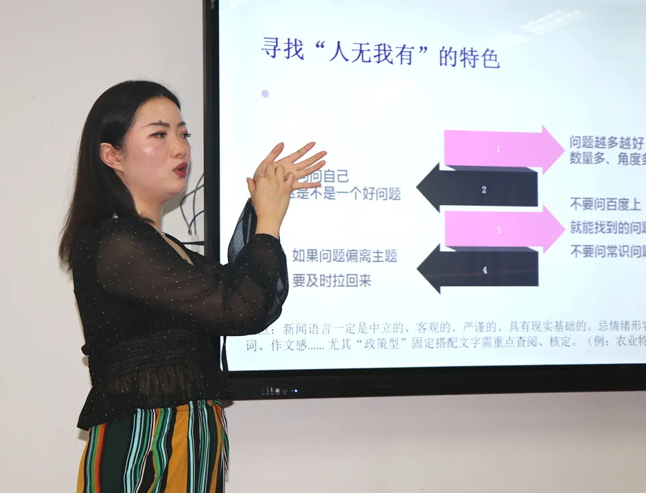 最后,郭嘉宁强调了采写好新闻语言的运用,不仅要客观真实,还要短、平、快,形成倒金字塔的结构。要做到既能足够吸引读者,又能以更高的效率、更好的效果将新闻传达给新媒体受众。