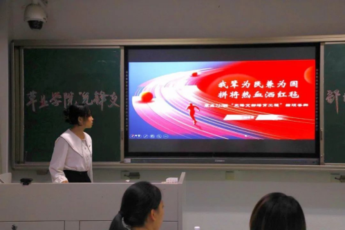 刘明慧同学汇报的主题是“我辈为民兼为国,拼将热血洒红毡”,并从年度工作回顾、特色活动展示、工作成果展示、存在问题分析四个方面分别介绍了草业222团支部的工作成果,其中“校园寻芳草,芳草识故人”革命先辈剪影剪贴画活动既凸显了草业学科特色,又加深了同学们的红色认知度和专业认同感。