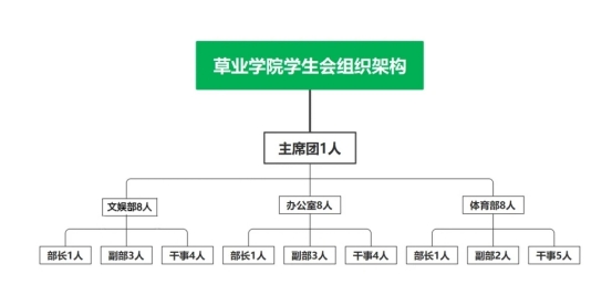 学生会分为三个部门,办公室、体育部和文娱部门。