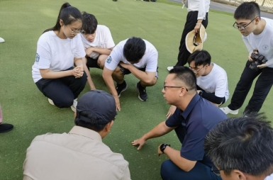 成员们前往深圳特发高尔夫俱乐部参观学习。草坪部贾铭强总监详细讲解了各类高尔夫草坪养护工具的使用方法和具体操作,并结合自己的学习和工作经历,强调了理论与实践相结合的重要性。
