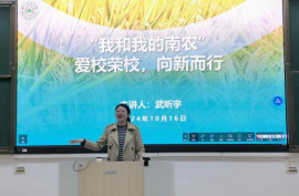 武昕宇进行了“爱校荣校、向新而行”主题教育。她说,我们即将迎来学校建校122校庆日,各项校庆活动精彩纷呈。为培育学生爱校情怀和荣校热情,推动以“诚朴勤仁”为核心的南农精神,在新时代、新校区、新起点、新征程中传承实践,她以自己的学习与工作经历为切入点,用主楼大草坪建植过程中的故事,展现av在线