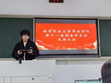王佳艺详细介绍了团委各部门工作职责,展示了近期开展的工作并介绍了本学期工作计划,重点介绍了av在线