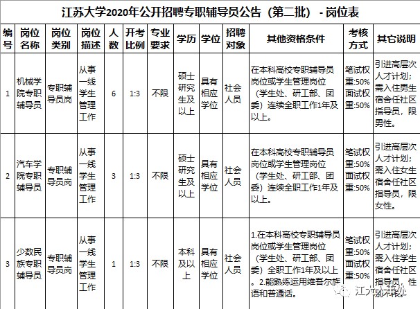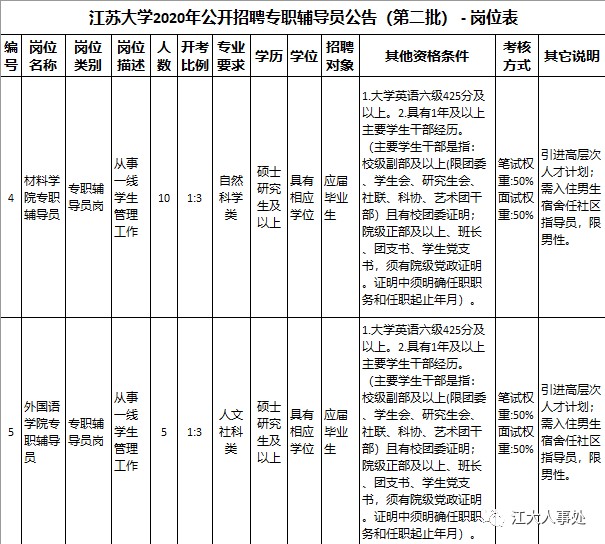 江苏大学2020年公开招聘专职辅导员公告(第二批)
