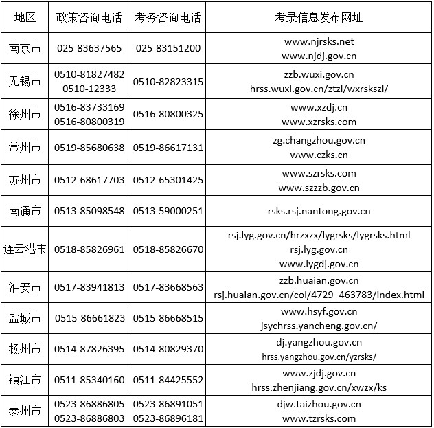 3.各设区市政策、考务咨询电话及考录信息发布网址