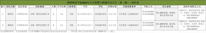 淮阴师范学院2022年公开招聘专职辅导员公告(第二批)