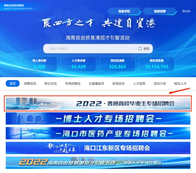 2022年海南自由贸易港招才引智活动高校毕业生专场线上招聘会启动