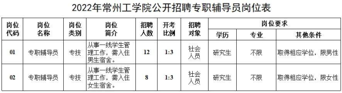 2022年常州工学院公开招聘专职辅导员公告