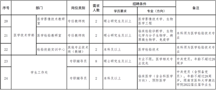 4.具备《南京医科大学康达学院2022年公开招聘岗位需求表(第一批次)》中岗位要求的资格条件。